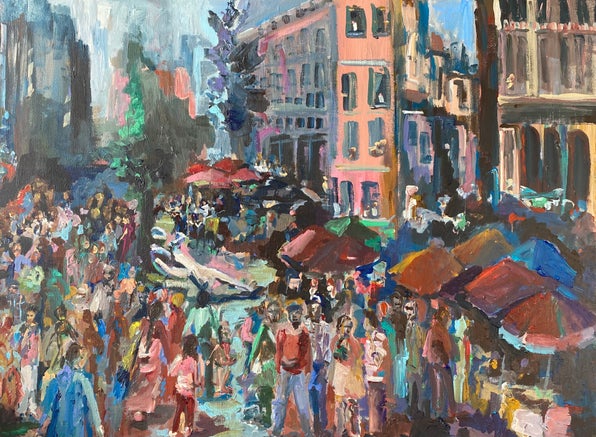 Gaïd is continuously working on her ongoing series ‘Women of the World’. Each painting measures 50 x 50 cm and is finished with a glossy epoxy layer, making every piece a unique work of art. Whether displayed individually or together, they form a striking addition to any interior. The paintings shown below offer an impression of the series, as all of these works have already been sold. The most recent portraits can be viewed at Kunstuitleen Kranenburgh in Bergen, Art Gallery Salon West in Amsterdam, and Sille Gallery in Oudewater. And of course, new portraits from this series will be presented at the next Affordable Art Fair.
