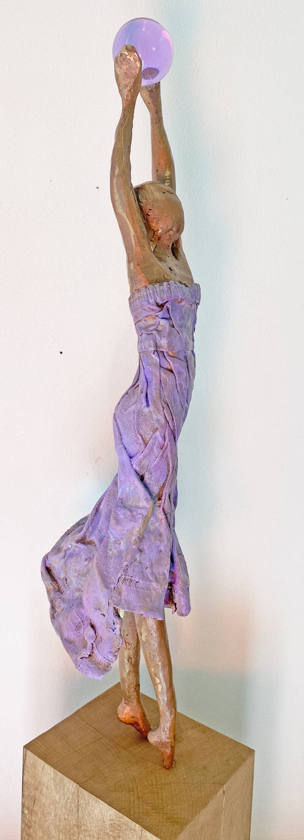 This is a unique bronze sculpture. It is 50 cm high (without the wood stand). The glass ball on top catches the light in a beautiful way. Like most of Gaïd Ombre's sculptures, this is one piece only. The only one there is!